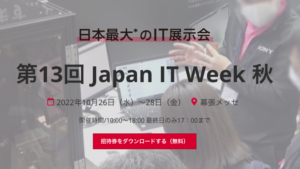 第13回 Japan IT Week 秋 過去の投稿で、第1回EDIXオンラインやDX Insight 2022 Winterの案内を行いました。10月26日からは幕張メッセでJapan IT Week秋が開催されます。 […]